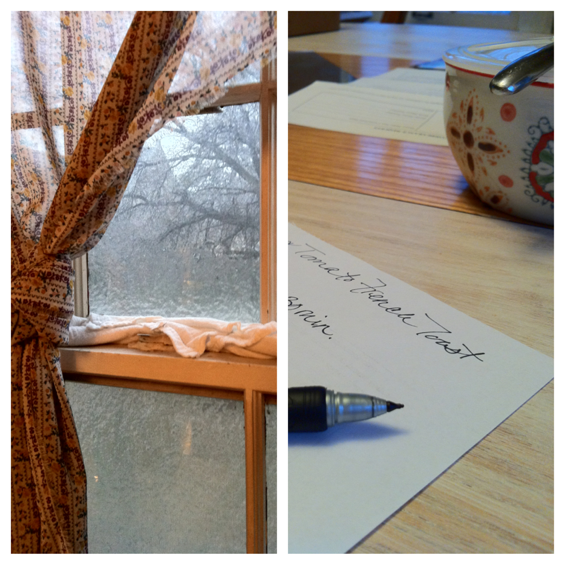 And then when I got home, there was a package on my door step. My frozen, stupid, ice encased doorstep. I opened it to find my copy of the Joy The Baker Cookbook! I’d forgotten that I’d even ordered it! Honestly, I haven’t even had a chance to flip through it, yet. But I think that it was something about having Joy sit there on the counter with me that prompted me. I whisked up the eggs, sliced my bread and then thought, “Woah! I’m nearly to French toast!” But I’m not a huge lover of sweets. Not to the degree that I want to eat them for dinner. I saw an onion and a vine of tomatoes on the counter and boom–that was it.