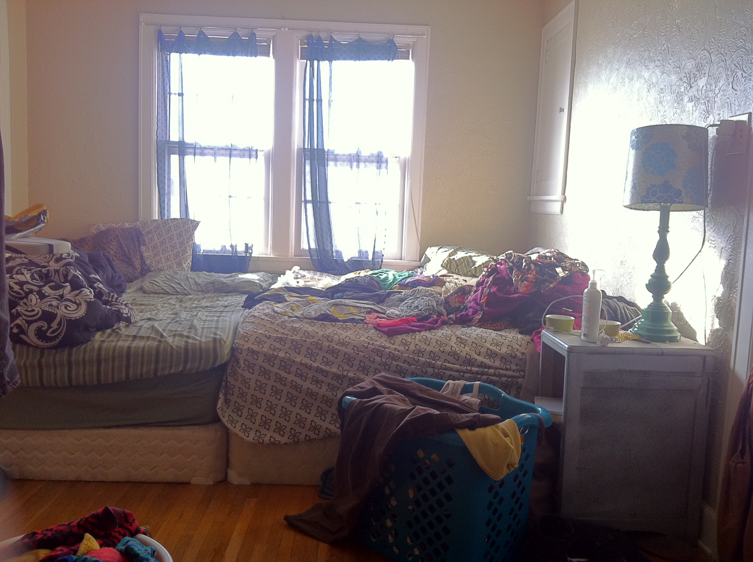Yes, this bed is made. What did I just say about making due with what you have? Anyway. The bed is no longer covered in laundry. The floor is no longer covered in laundry. In fact, there’s not a stitch of my dirty laundry anywhere in this entire house. I did ALL of my laundry this weekend. That hasn’t happened in years (I’m not exaggerating).
